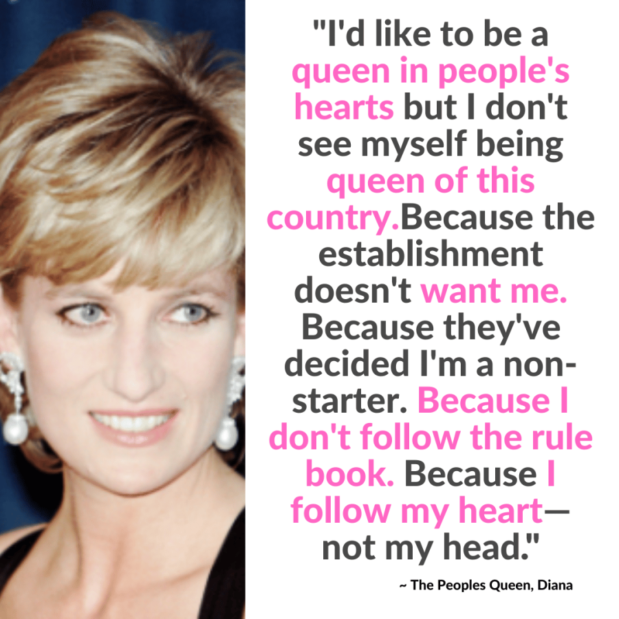 The people’s queen—Diana, queen of hearts…I often wonder how different the world would be if Diana hadn’t had a ‘fated’ car crash. Did she predict her death?