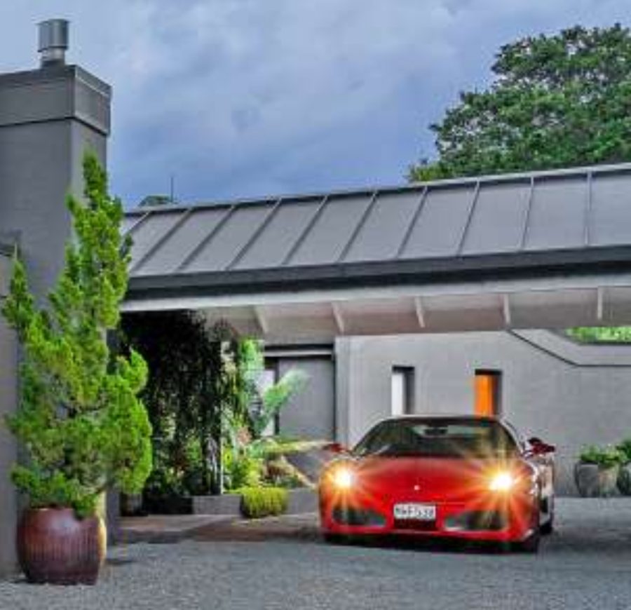 The plantings in the front and at the side of the house bridge the gap between art and horticulture. Local landscaper Jonathan Fulton and his crew did some heavy lifting. The 30-year-old Pitt Island nikaus needed a crane and four men to position into place. Jonathan and his team also planted thousands of natives up the drive we created to link the back section with the entrance to my art gallery and studio. The honeybees, Kiwis and other bird and native life love the food and shelter.